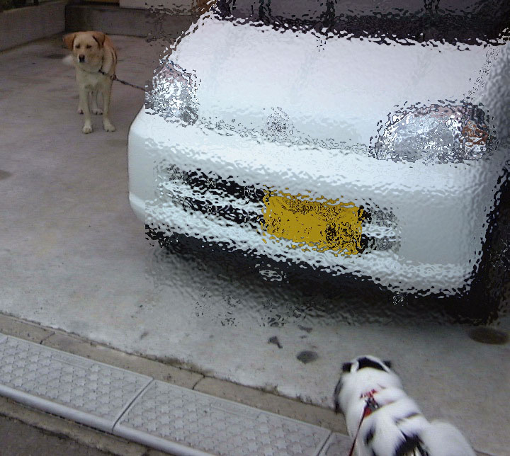 帰り道は、先の親子連れや、いろんな人にお愛想しながら帰ってきました。お家の近くになればHARRAYちゃんの所に寄っていきます。 HARRAYちゃんは、結構遠くからでも私の姿が見えるとわかるのか、寝ているのを起きて背伸びして来たね〜と迎えてくれます。 |