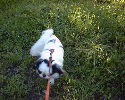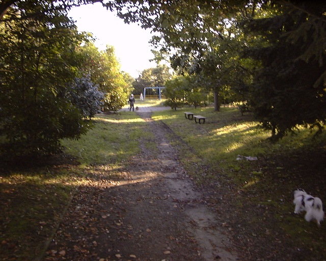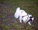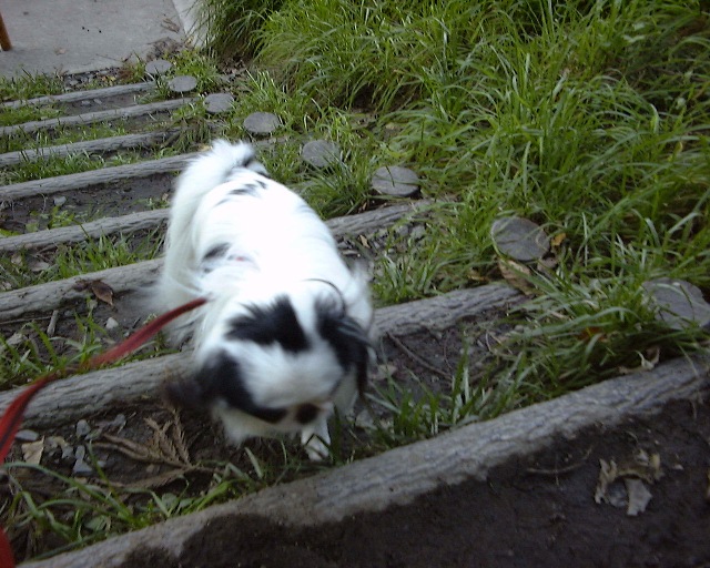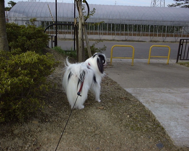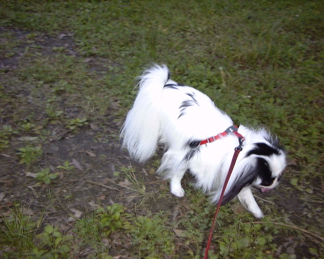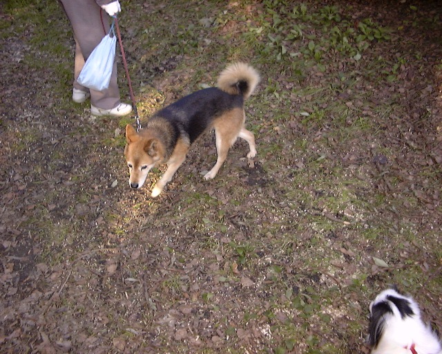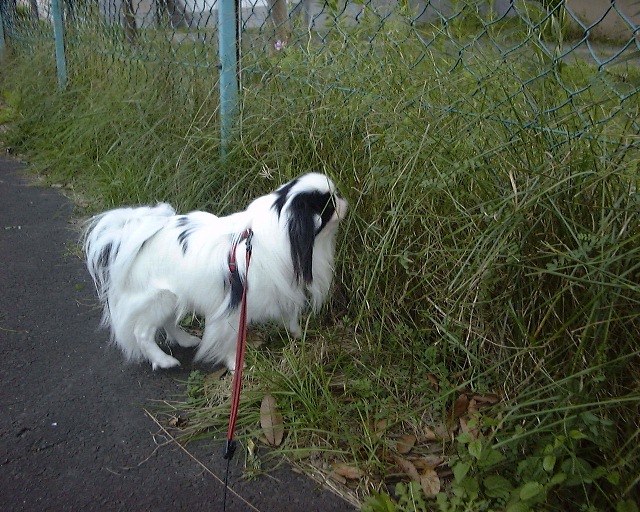 公園についたらば何よりもいろいろとクンクン嗅ぎまわります。この時間が楽しいようです。一緒にお散歩している方は、変なものを嗅いだり、舐めたりしないで欲しいというのが本音。 |
