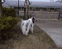 次の日は近くの中学校一週コースです。 途中、何かを見つけたのでしょうか、クンクンと匂いを嗅いでいます。 |