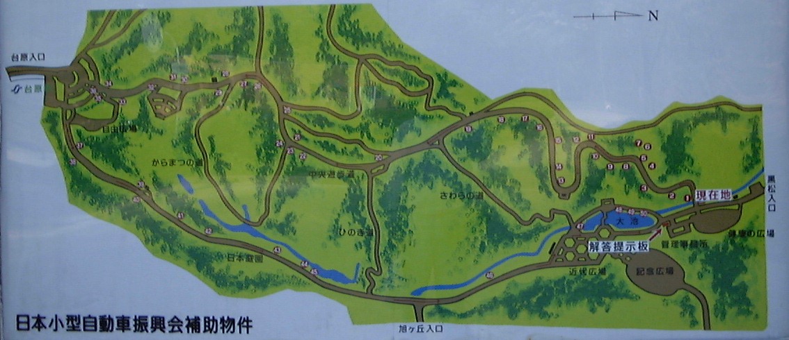 しばらく進むと、野外ステージがありました。観客席に腰を下ろして、喉が乾くだろうと買っておいたお茶の缶を開けて、「ハイ」と金太郎に飲ませようとしたのですが、「このお茶嫌い、水がいい」と飲んでくれません。喉は乾いているようですが、、、この後も何度かお茶をあげましたが、やっぱり飲んでくれませんでした。 金太郎が飲まないお茶を飲み干しながら、『次は冷たい水を持ってくることにしよう』と、考えていました。 |