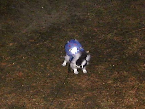 銀ちゃんがブルブルとやっている一瞬です。 私が金太郎とのお散歩に行っているときに、飼い主Aが銀ちゃんだけとお散歩に行きました。 いつもなら15分くらいの距離を40分くらいかかってお散歩してきました。まだしばらくは、通しの散歩はできないですね。 |