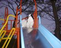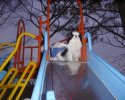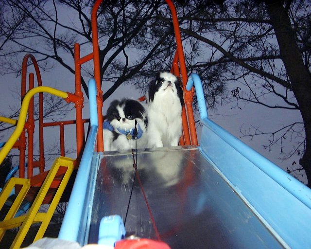 久しぶりに滑り台に上るというので、上げてやりました。 高いところが好きなのでご満悦です。 |