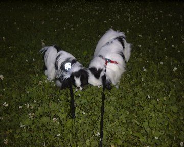 銀ちゃんが、やっとまともに散歩に行けるようになったころです。 たしか1.3kgくらいで、ちっとも大きくならない、もっとごはん食べなさいと、指導してました。 銀ちゃんの中では、まだ世界は怖いものがあって、金兄ちゃんの影に隠れてる、ようなところもありました。 |