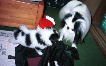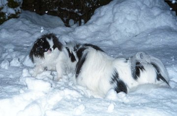 1999/12/29で、場所は飼主Aの勤め先です。 小さい、可愛い、人懐こいと3拍子そろえば、どこに連れて行っても邪険にされることはありません。 そういうことが、人懐こさを助長させるんでしょうね。 |