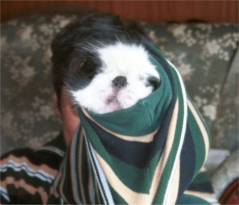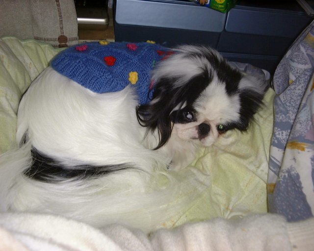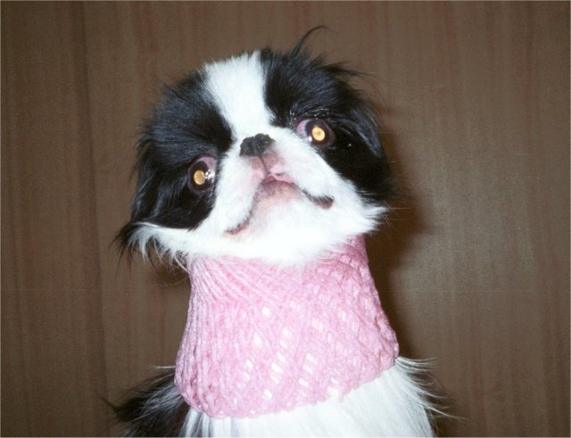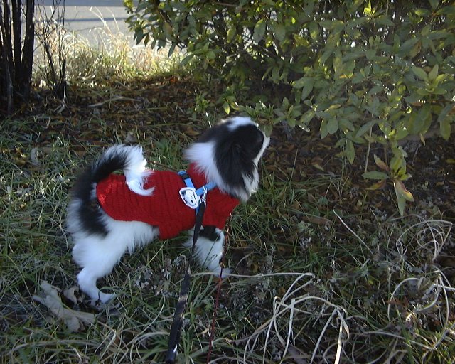 さて、先ほどのセーターですが、銀次郎も着せられてます。よくよくみると、体に合わせるために詰めたのが判りますね。