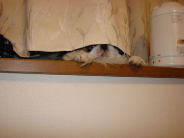 兄ちゃん、熱いよ〜(TT) と言うので、出窓のところに乗せて、窓を開けてあげました。