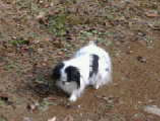 ナナちゃんがリンゴ狩りで林の中を歩いてます。